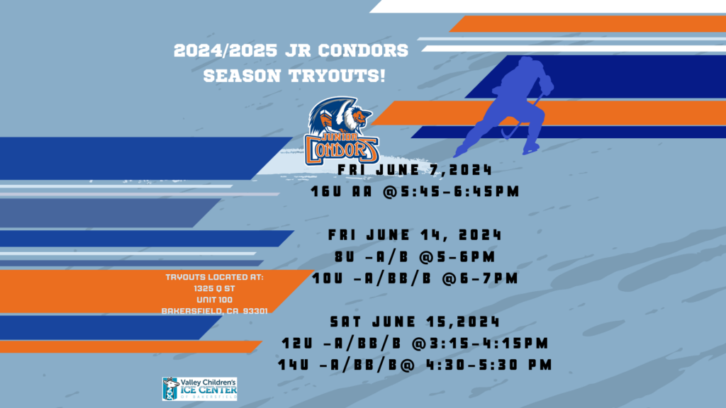 Ready to take the plunge into becoming a Jr. Condor? Registration for tryouts for the 2024-2025 season is now open! See the following schedule for your age group’s date and time. Reminder that each age group is based on birth year. AA, A, BB, and B are the levels of teams that will be considered…