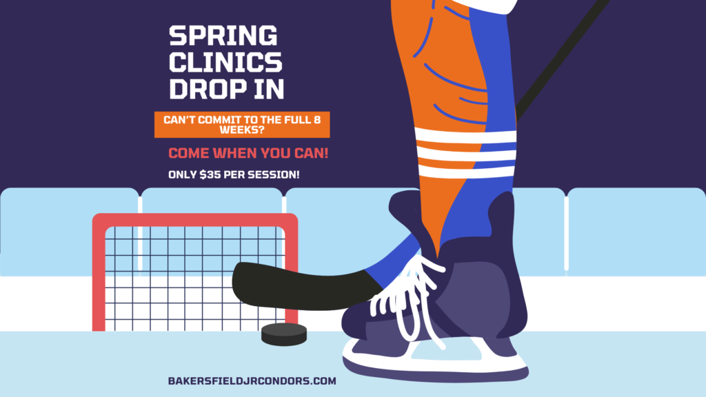 Were you interested in having your child participate in Spring Clinics, but missed the deadline? No problem! The Jr. Condors are offering drop in sessions during our Spring Clinics! Show up when you want for only $35 per session whether its a skill day or scrimmage day. See the graphic below for dates and times…