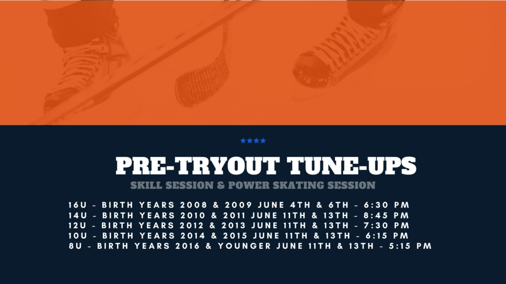 Prepare for tryouts by tuning up your player’s skills! Skills sessions will be led by Coach Andrew Ianiero and Power Skating sessions will be led by Coach Corrie Frias. All sessions are 1 hour and will be held at the Valley Children’s Ice Center. 16U – Birth Year 2008 & 2009 only Tuesday, 6/4/24 Skills…
